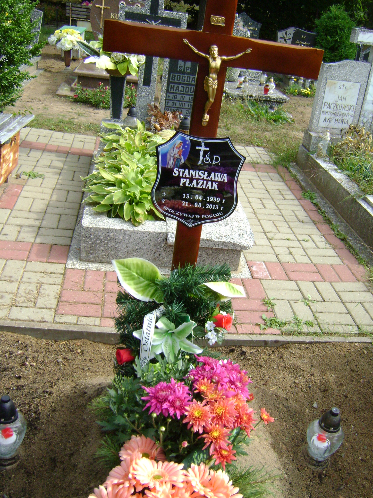 Grób: IX.8.13 Wadziak Jan ur.:19.10.1928 zm.:28.02.1991 Płaziak Stanisława Danuta ur.:13-04-1939 zm.:21-08-2013 |