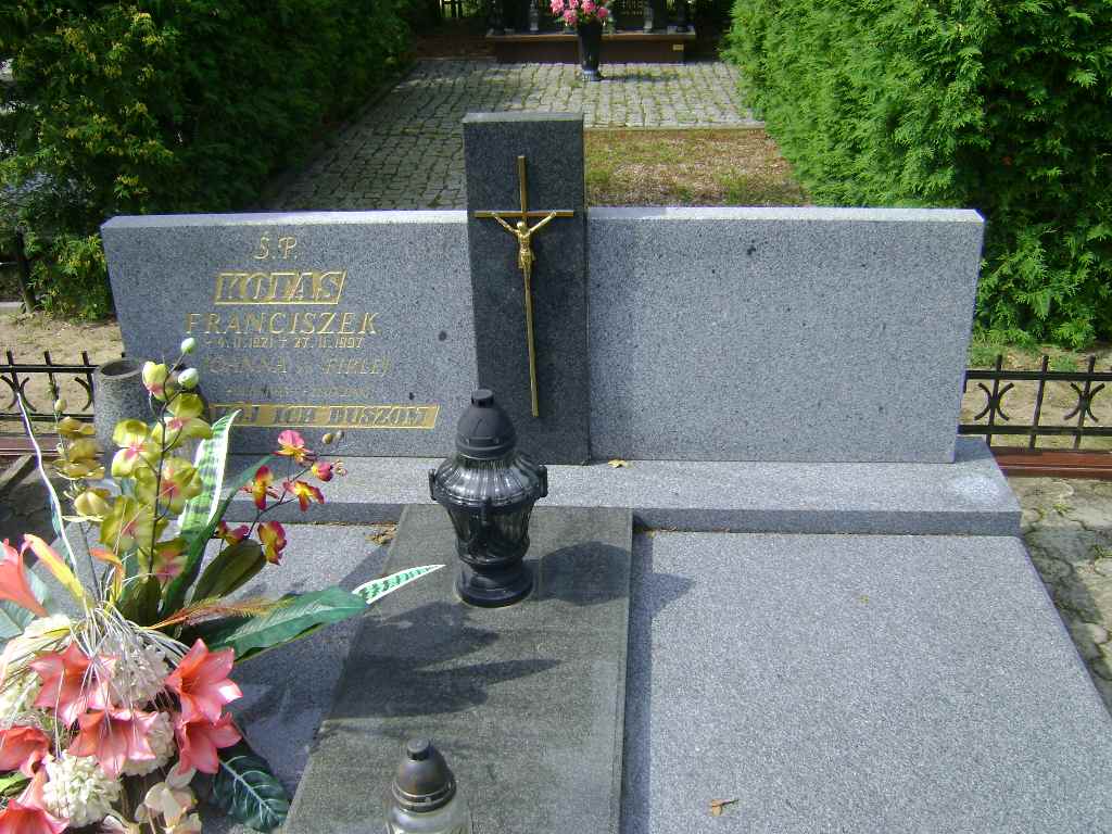 Grób: VII.5.1 Kotas Franciszek ur.:4.02.1921 zm.:29.01.1997 Kotas Joanna ur.:21.01.1923 zm.:21.05.2006 |