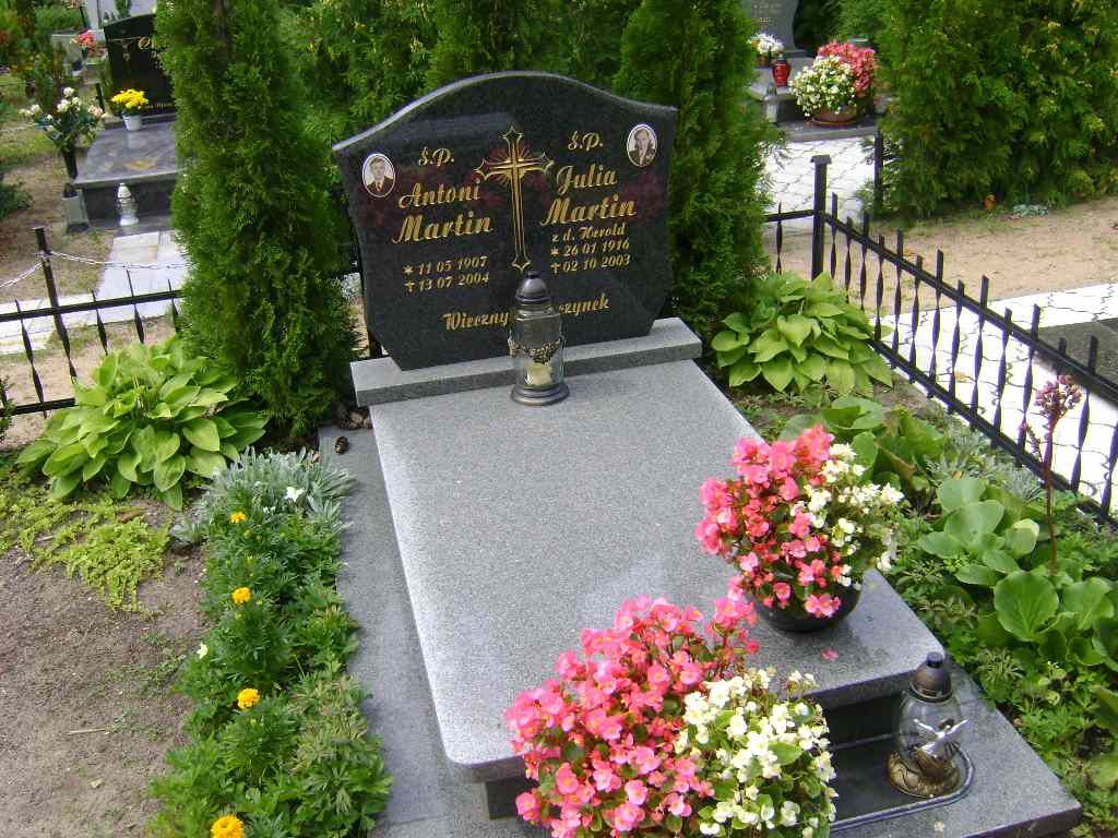 Grób: VIII.1.20 Martin Julia ur.:26.01.1916 zm.:02.10.2003 Martin Antoni ur.:11.05.1905 zm.:13.07.2004 |