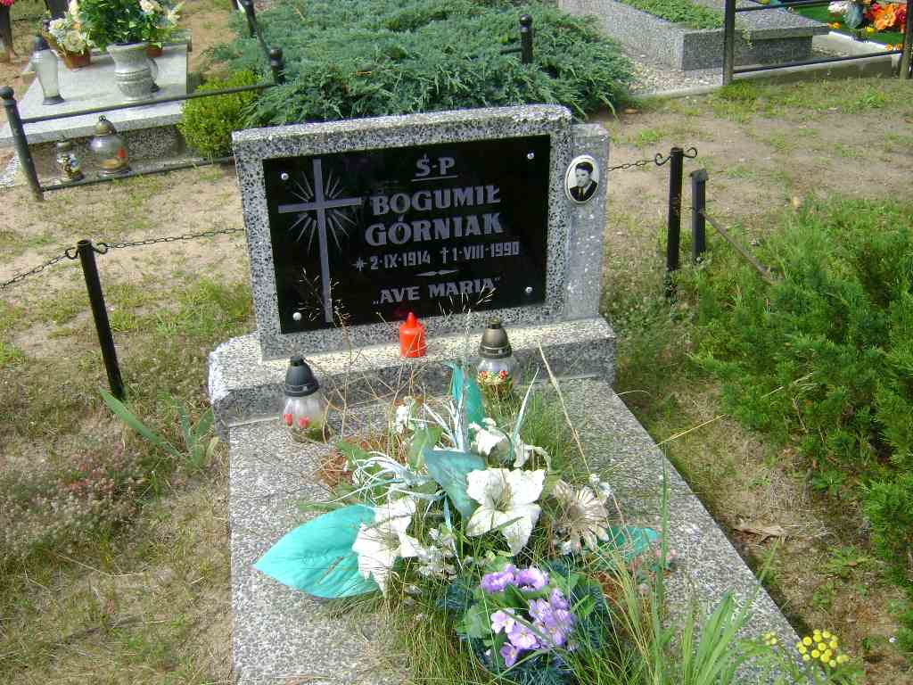 Grób: VIII.7.23 Górniak Bogumił ur.:02.09.1914 zm.:01.08.1990 Górniak Michalina ur.:07-09-1920 zm.:06-01-1985 |