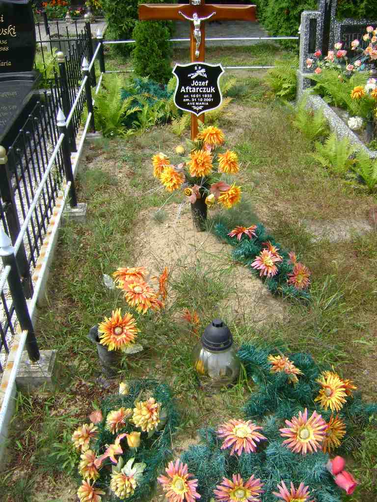 Grób: VIII.8.4 Aftarczuk Józef ur.:16.01.1933 zm.:31.10.2001 Aftarczuk Eudokia ur.:13-03-1913 zm.:27-05-1996 Aftarczuk Antoni ur.: zm.:03-03-1986 |