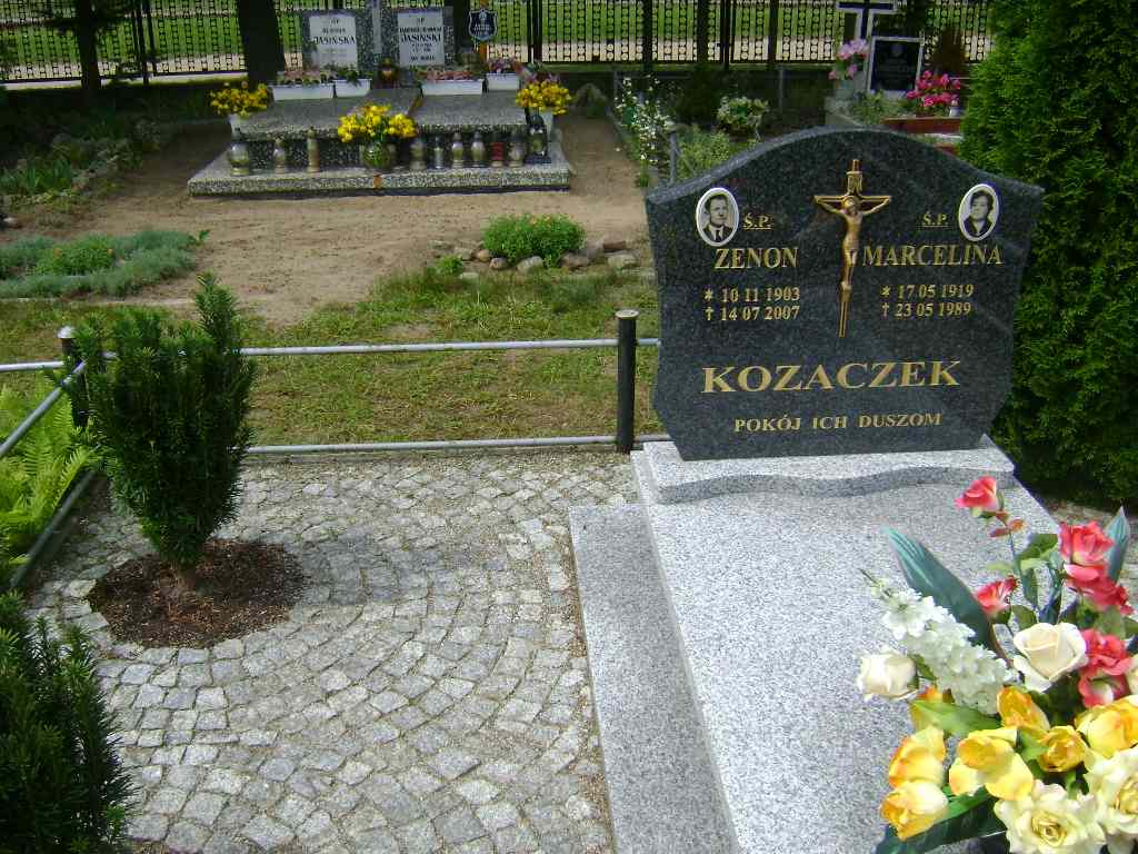 Grób: VIII.9.17 Kozaczek Zenon ur.:1903.11.10 zm.:2007.07.14 Kozaczek Marcelina ur.:17.05.1919 zm.:23.05.1989 |