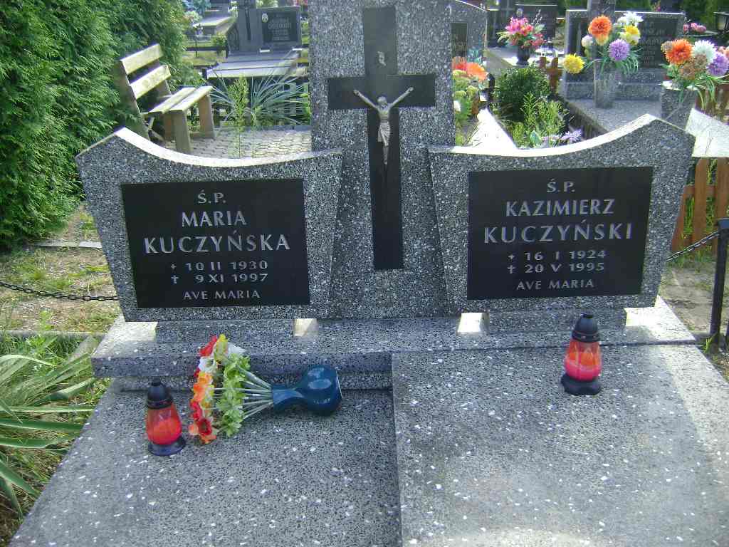 Grób: X.5.16 Kuczyński Kazimierz ur.:16.01.1924 zm.:20.05.1995 Kuczyńska Maria ur.:10.02.1930 zm.:09.11.1997 |