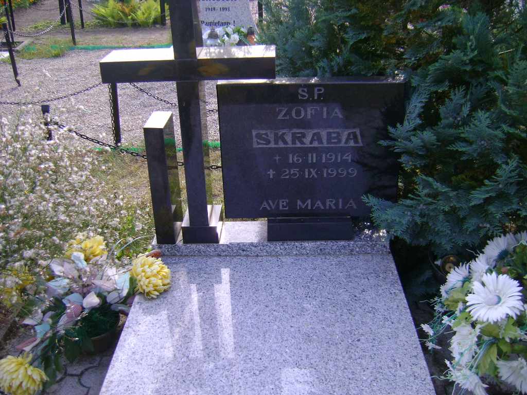 Grób: X.6.6 Skraba Zofia ur.:26.02.1916 zm.:25.09.1999 |