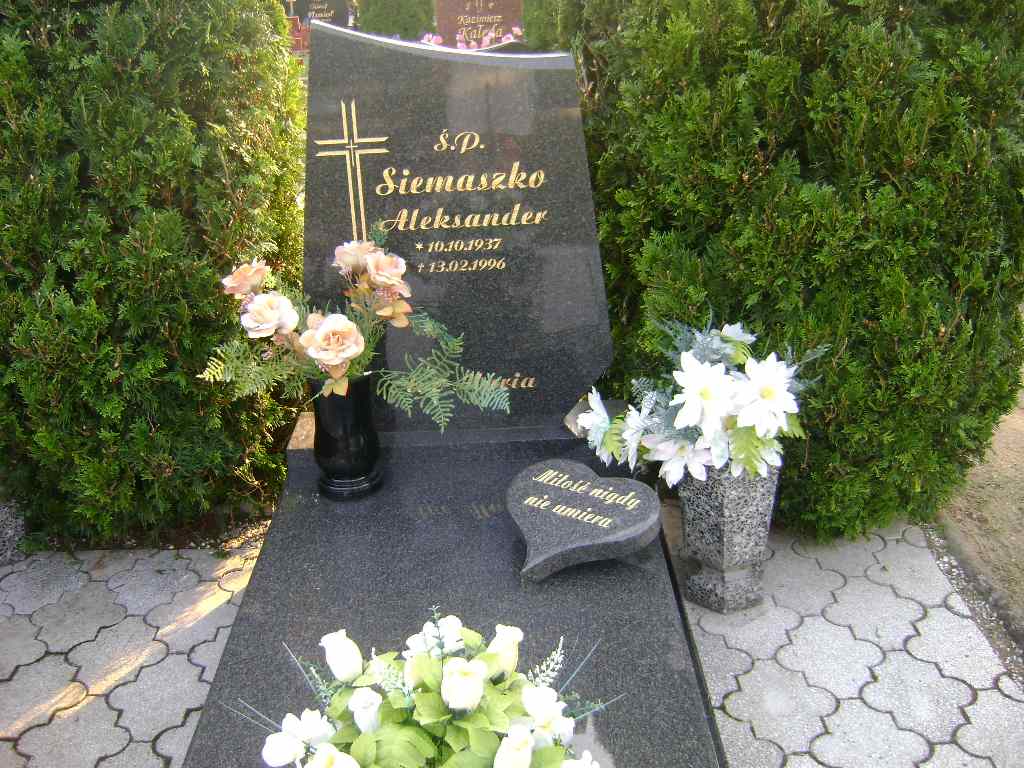 Grób: XII.5.1 Siemaszko Aleksander ur.:10.10.1937 zm.:13.02.1996 Siemaszko Helena ur.:18-02-1942 zm.:11-11-2020 |