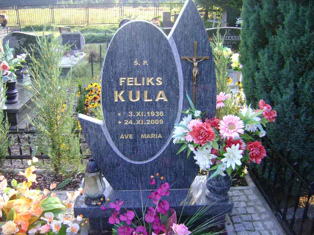 Grób: XII.5.19 Kula Feliks ur.:1936.11.03 zm.:2009.11.24 |