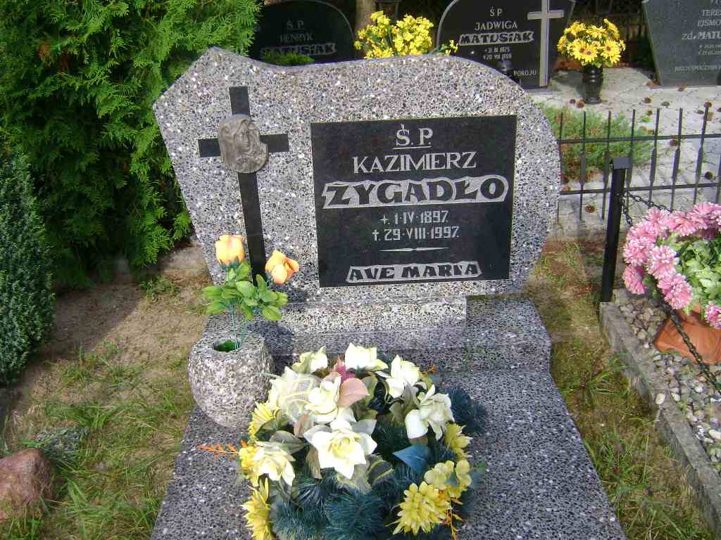 Grób: XIII.2.8 Żygadło Kazimierz ur.:1.04.1987 zm.:29.08.1997 Żygadło Rozalia ur.:01-01-1901 zm.:22-12-1983 |