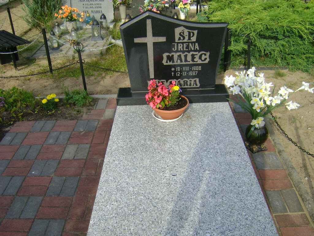Grób: XIII.3.2 Malec Irena ur.:19.08.1908 zm.:12.09.1997 Malec Maria Danuta ur.:16-04-1935 zm.:10-03-2018 |