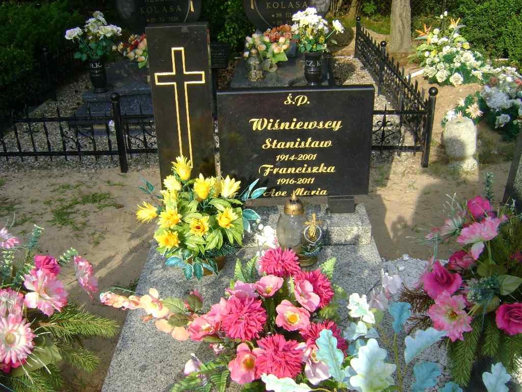 Grób: XV.2.17 WIŚNIEWSKI Stanisław ur.:20.01.1914 zm.:24.12.2001 Wiśniewska Franciszka ur.:1916.06.03 zm.:22-01-2011 |