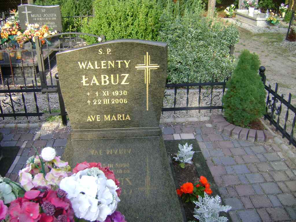 Grób: XV.3.17 Łabuz Walenty Wojciech ur.:1930.02.01 zm.:2006.03.22 |