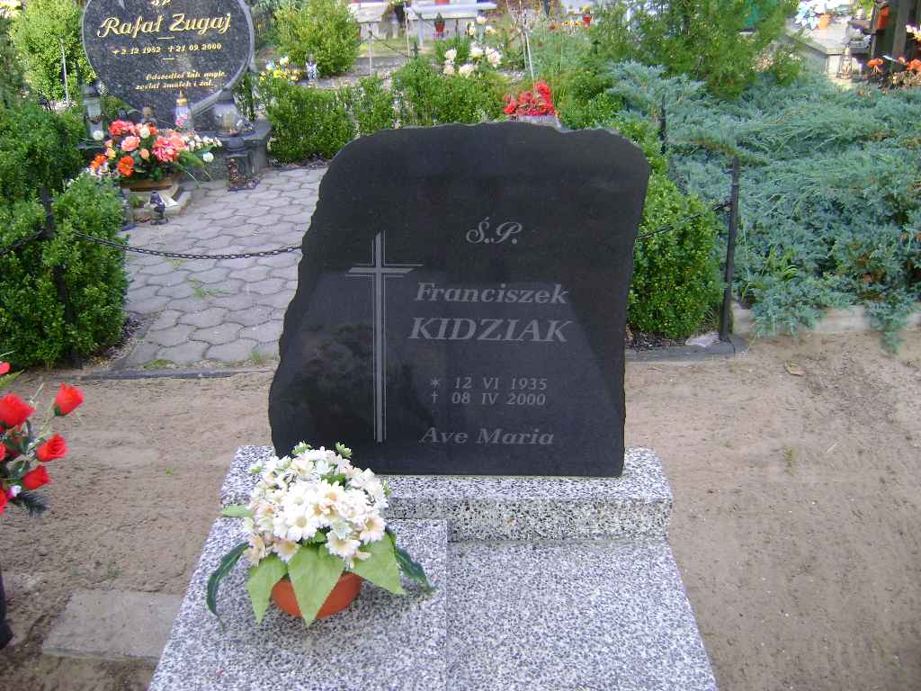Grób: XV.4.8 Kidziak Franciszek ur.:12.06.1935 zm.:08.04.2000 |