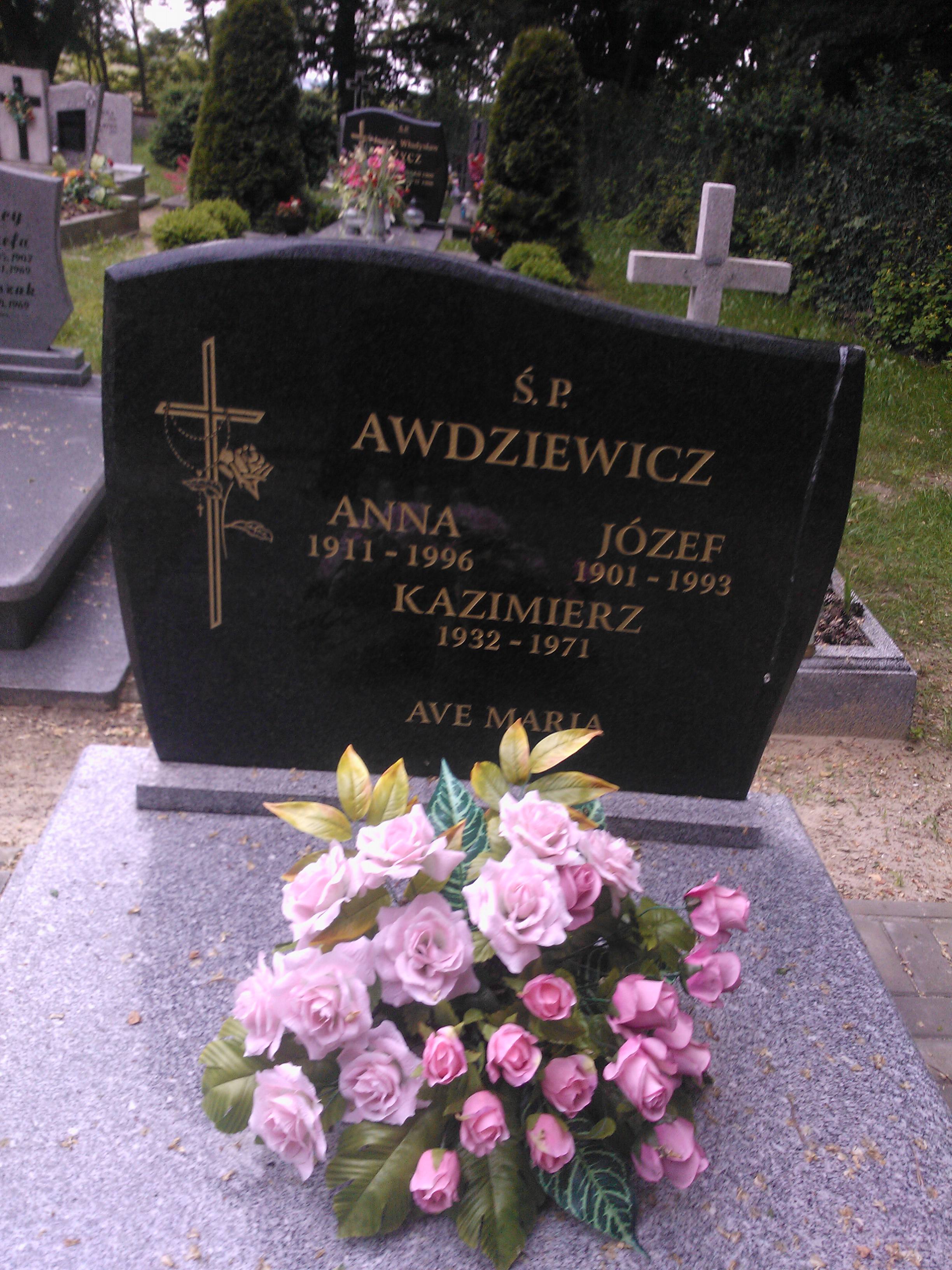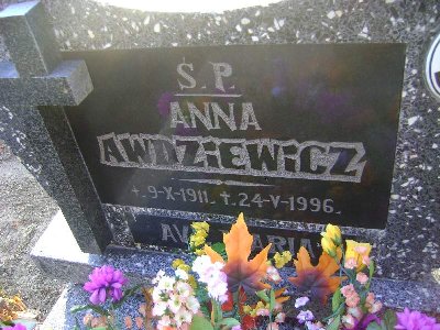 Grób: II.2.1 Awdziewicz Anna ur.:9.10.1911 zm.:24.05.1996 Awdziewicz Kazimierz ur.:1932 zm.:1971 Awdziewicz Józef ur.:1901 zm.:1993 |