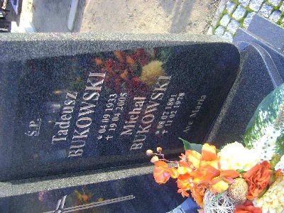 Grób: I.1.12 Bukowski Tadeusz ur.:4.09.1933 zm.:19.04.2005 Bukowski Michał ur.:8.07.1891 zm.:11.02.1978 |