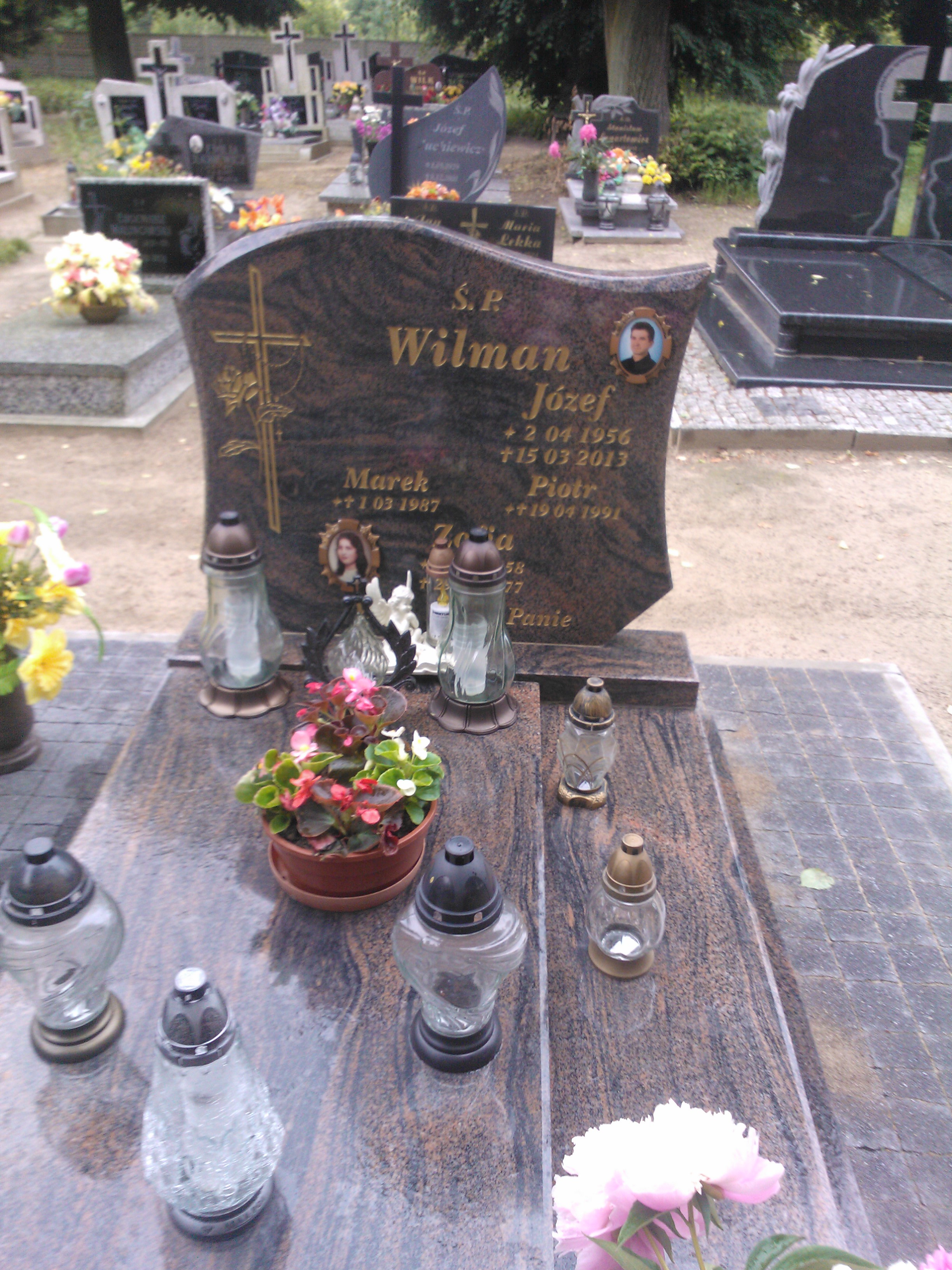 Grób: I.1.18 Wilman Zofia ur.:15.04.1958 zm.:29.12.1977 Wilman Marek ur.: zm.:1.03.1987 Wilman Piotr ur.: zm.:19.04.1991 Wilman Józef ur.:02.04.1956 zm.:15.03.2013 Wilman Józef ur.:02-04-1956 zm.:15-03-2013 |