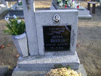 Grób: I.4.17 Orsulak Józefa ur.:9.03.1905 zm.:14.12.1971 Iwaniszyn Jan ur.:01.11.1944 zm.:30.03.2013 Iwaniszyn Jan ur.:01-11-1944 zm.:30-03-2013 |
