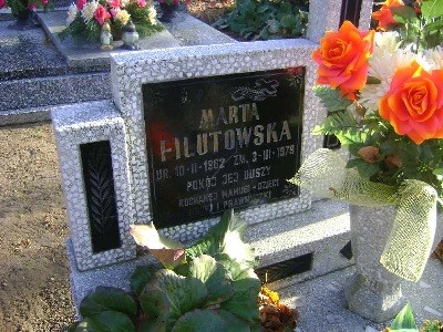 Grób: I.4.25 Filutowska Marta/Maria ur.:10.02.1902 zm.:3.03.1979 Siusta Wojciech ur.:18.04.1901 zm.:3.10.1972 |