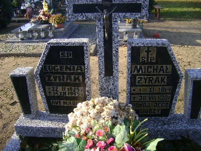 Grób: II.3.4 Żyrak Eugenia ur.:22.02.1925 zm.:14.12.1995 Żyrak Michał ur.:1.11.1914 zm.:30.08.1991 |