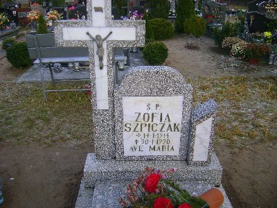 Grób: A4.1.9 Szpiczak Zofia ur.:14.01.1914 zm.:30.01.1990 Szpiczak Adam ur.:06-01-1948 zm.:29-08-2018 |