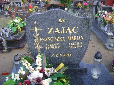 Grób: A7.2.7 Zając Franciszka ur.:22.05.1927 zm.:08.07.1993 Zając Marian ur.:08.09.1928 zm.:30.10.1994 Zając Wiesław ur.:20-04-1957 zm.:24-05-2016 Zając Eugeniusz ur.:01-11-1955 zm.:07-10-2022 |