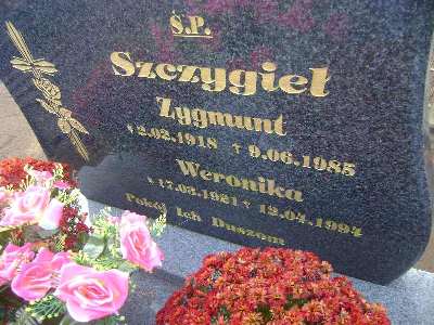 Grób: I.4.10 Szczygieł Zygmunt ur.:2.02.1918 zm.:9.06.1985 Szczygieł Weronika ur.:17.03.1921 zm.:12.04.1994 |