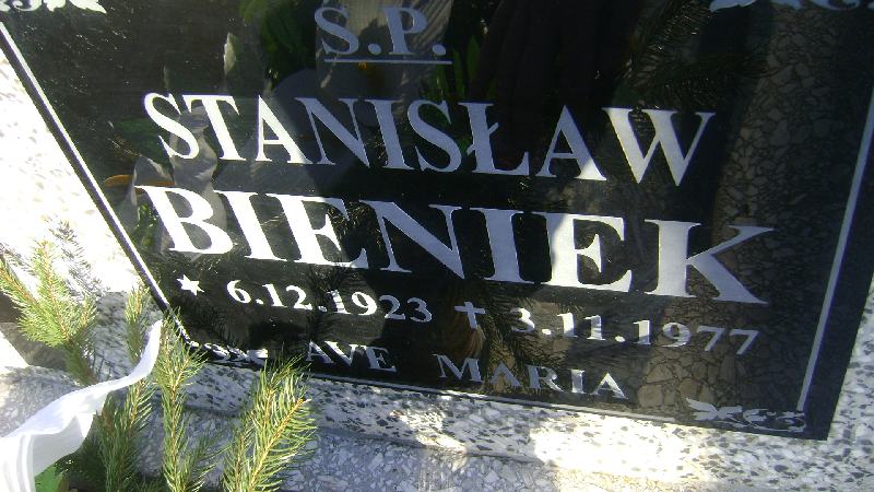 Grób: I.15.1 Bieniek Stanisław ur.:06.12.1923 zm.:03.11.1977 Biernacka Zenobia ur.:06-09-1903 zm.:21-10-1973 Biernacki Jan ur.:26-01-1895 zm.:03-12-1965 Bieniek Helena Teresa ur.:06-01-1934 zm.:16-01-2017 |
