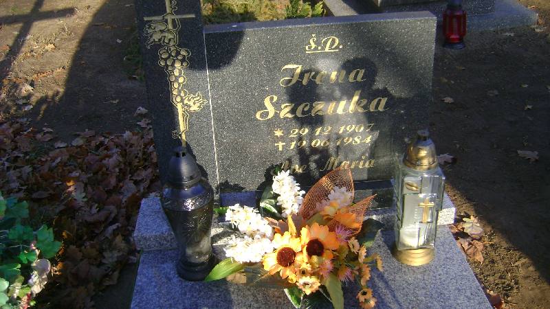 Grób: I.17.3 Szczuka Irena ur.:29.12.1907 zm.:19.06.1984 |