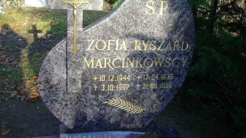 Grób: I.18.2 Marcinkowska Zofia ur.:10.12.1944 zm.:03.10.1997 Marcinkowski Ryszard ur.:17.04.1936 zm.:21.08.1969 |