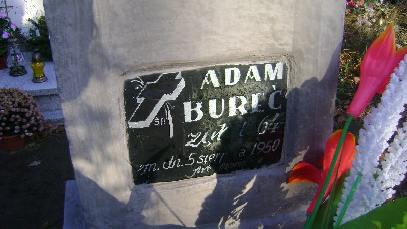 Grób: I.19.3 Bureć Adam ur.:5.1.1883 zm.:05.07.1950 żył l.64 |