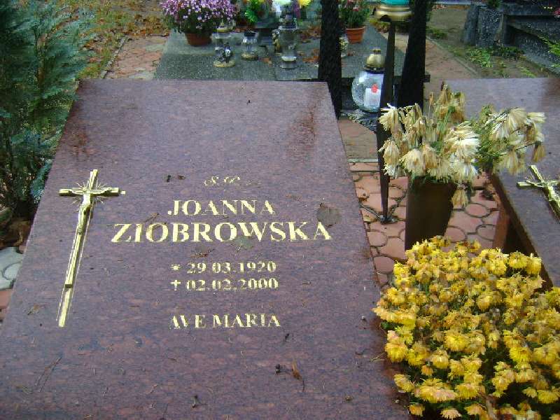 Grób: I.16.1 Ziobrowska Joanna ur.:29.03.1920 zm.:02.02.2000 |