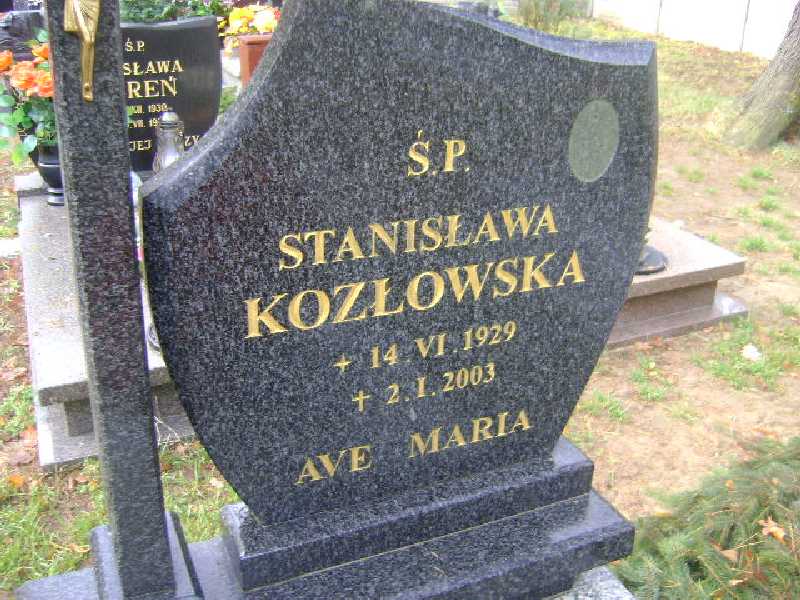 Grób: I.16.9 Kozłowska Stanisława ur.:14.06.1929 zm.:02.01.2003 Kozłowska Stanisława ur.:25-07-1950 zm.:30-12-2024 |