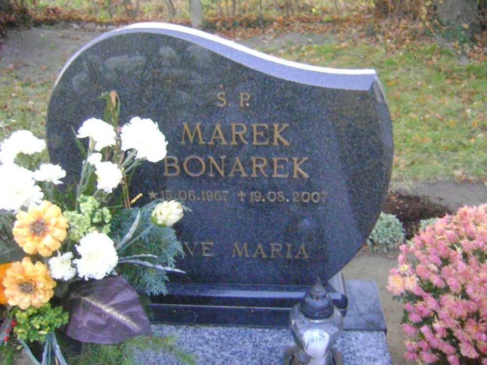 Grób: I.1.4 Bonarek Marek ur.:15.06.1967 zm.:19.08.2007 III rząd po lewej stronie |