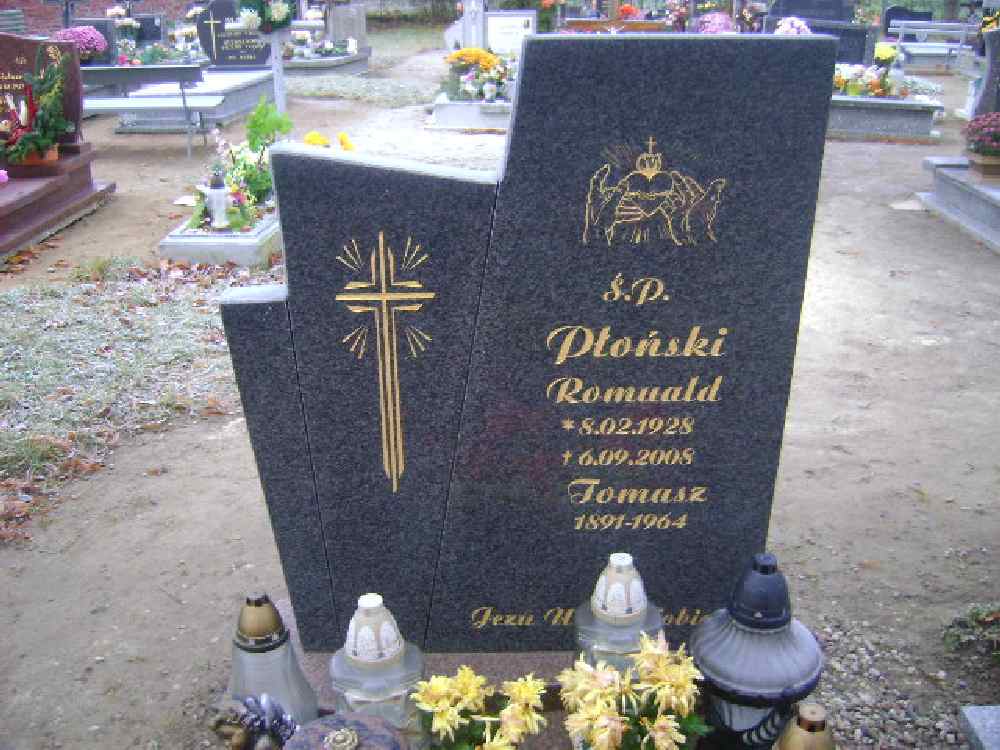 Grób: I.7.7 Płoński Romuald ur.:08.02.1928 zm.:06.09.2008 po lewej stronie Płoński Tomasz ur.:1891 zm.:1964 |