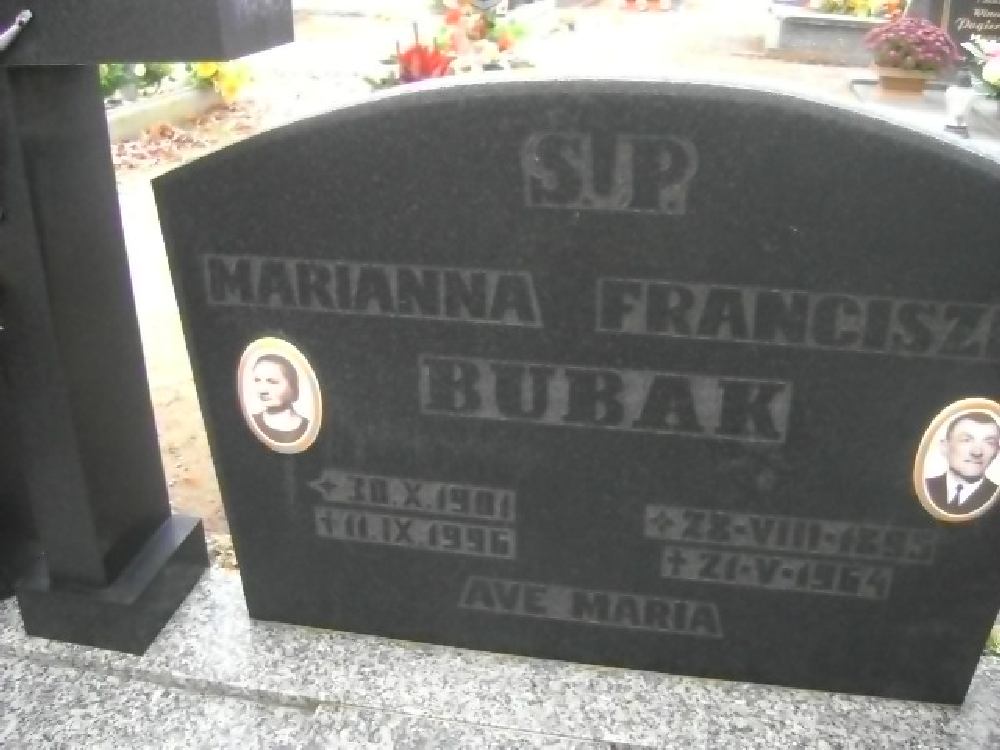 Grób: I.7.8 Bubak Marianna ur.:30.10.1901 zm.:02.09.1996 Bubak Franciszek ur.:28.08.1895 zm.:21.05.1964 |