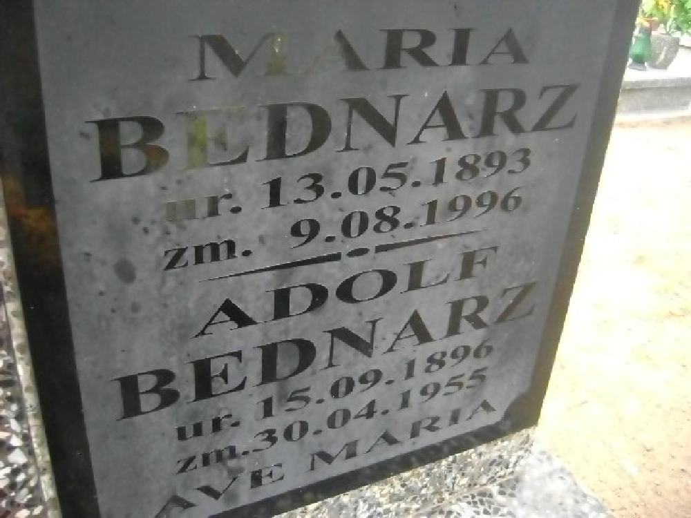 Grób: I.8.16 Bednarz Maria ur.:13.05.1893 zm.:09.08.1996 Bednarz Adolf ur.:15.09.1896 zm.:30.04.1955 Krzywda Grażyna ur.:27-02-1960 zm.:23-09-2024 |