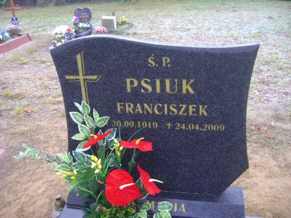 Grób: III.1.7 Psiuk Franciszek ur.:20.09.1919 zm.:24.04.2009 Psiuk Janina ur.:02-10-1926 zm.:29-03-2015 |