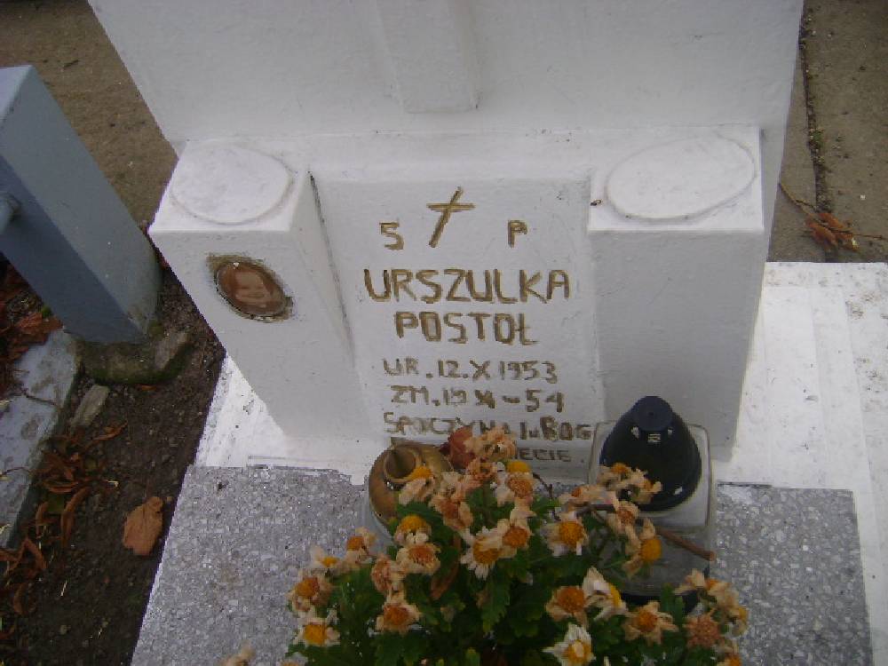 Grób: III.2.32 Postół Urszula ur.:12.10.1953 zm.:19.10.1954 |