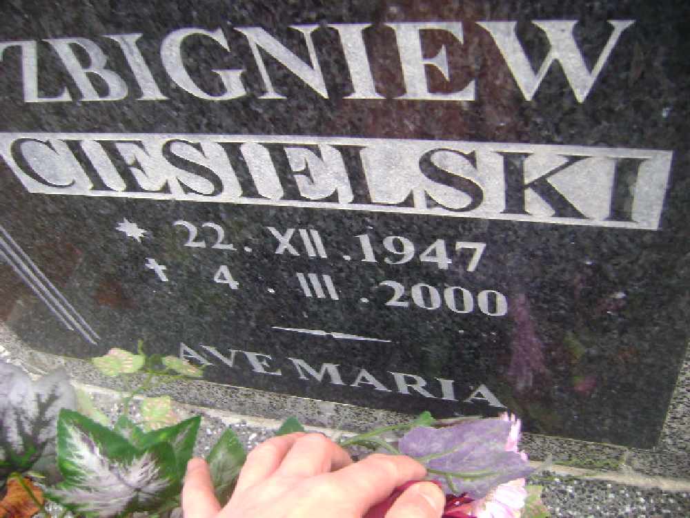 Grób: III.6.25 Ciesielski Zbigniew ur.:22.12.1947 zm.:04.03.2000 |