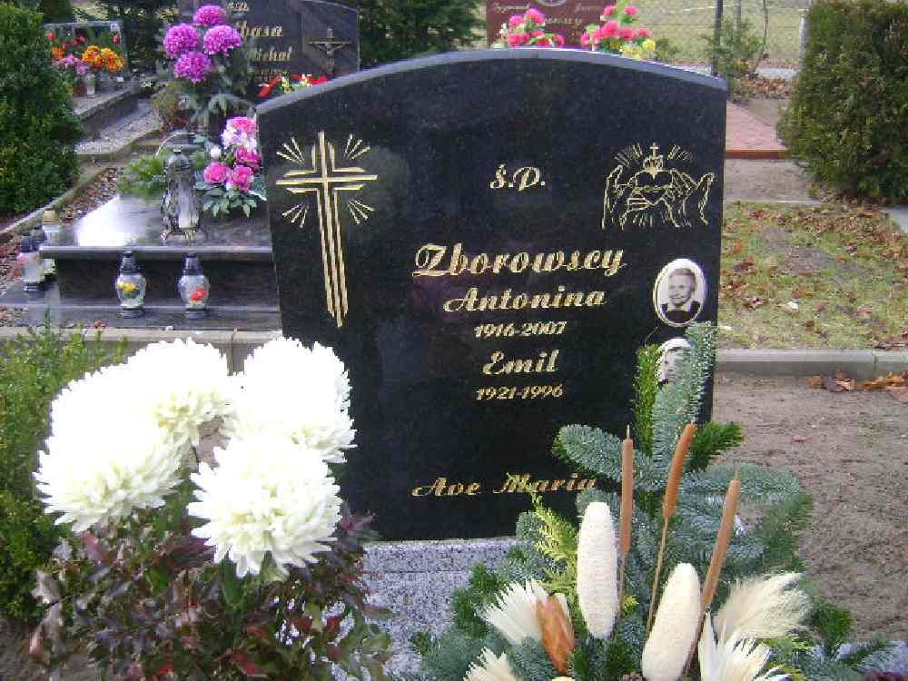Grób: I.4.7 Zborowska Antonina ur.:1916 zm.:2007 Zborowski Emil ur.:1921 zm.:1996 Zborowski Józef ur.:17-03-1957 zm.:11-10-2024 |