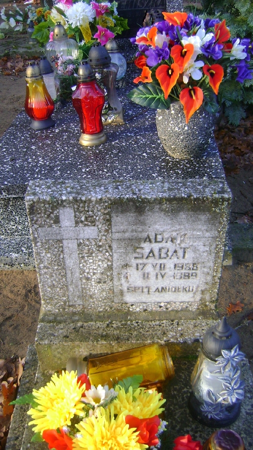 Grób: I.12.10 Sabat Adam ur.:17.07.1988 zm.:11.04.1989 Wójcik Józef ur.:06-05-1940 zm.:19-11-2015 |