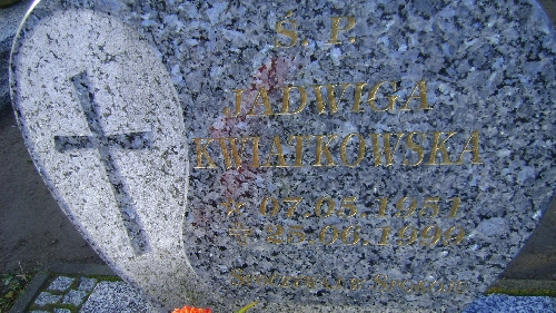 Grób: I.16.27 Kwiatkowska Jadwiga ur.:07.05.1951 zm.:25.06.1999 |
