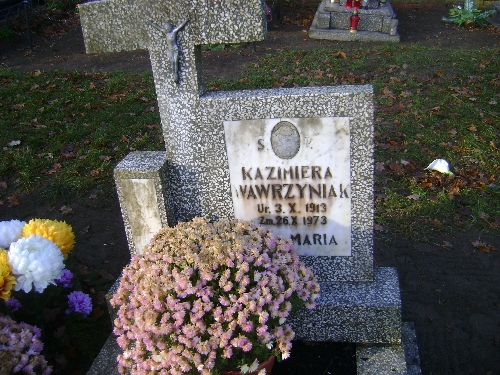Grób: I.2.28 Wawrzyniak Kazimiera ur.:03.10.1913 zm.:26.10.1973 Jędrzejewska renata ur.:18-11-1961 zm.:01-11-2019 |