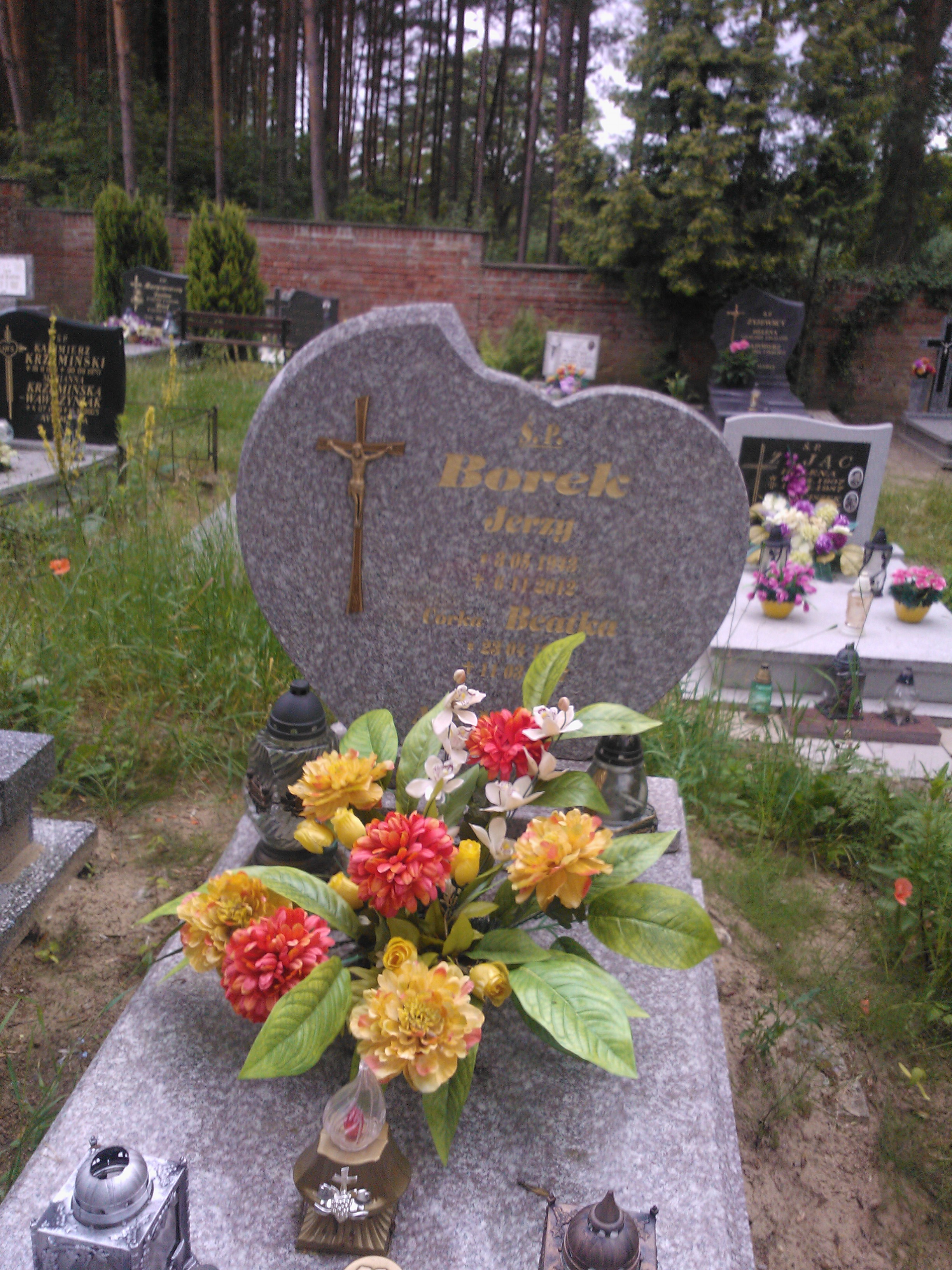 Grób: I.4.38 Borek Beatka ur.:23.04.1979 zm.:27.03.1987 Borek Jerzy ur.:03-05-1943 zm.:06-11-2012 |