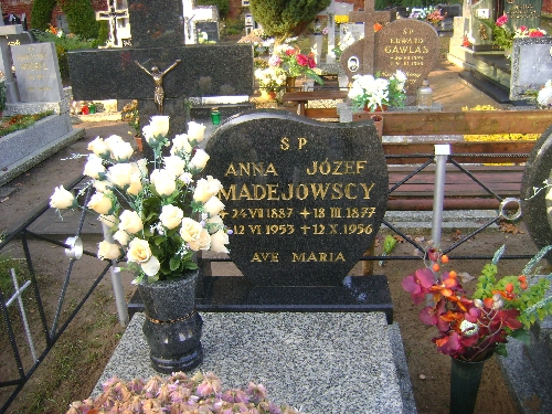 Grób: I.5.15 Madejowski Anna ur.:24.07.1887 zm.:12.06.1953 Madejowski Józef ur.:18.03.1877 zm.:12.10.1956 |