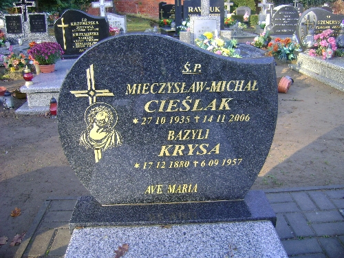 Grób: I.5.20 Cieślak Mieczysław- Michał ur.:27.10.1935 zm.:14.11.2006 Krysa Bazyli ur.:17.12.1880 zm.:06.09.1957 |