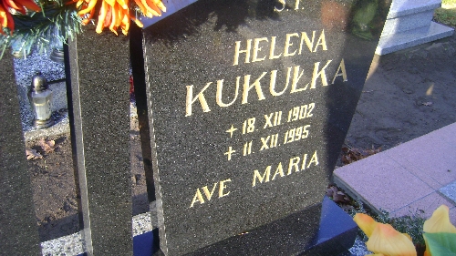 Grób: I.8.47 Kukuła Helena ur.:18.12.1902 zm.:11.12.1995 Czarnecka Helena ur.:04-04-1936 zm.:27-05-2024 |