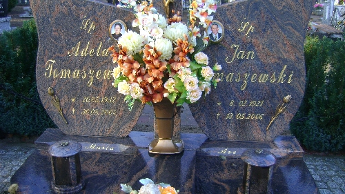 Grób: II.1.12 Tomaszewska Adela ur.:20.05.1932 zm.:30.08.2004 Tomaszewski Jan ur.:08.02.1921 zm.:13.05.2006 |