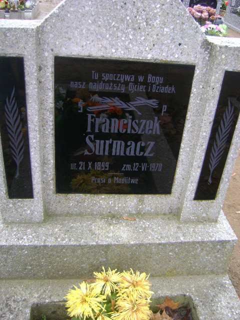 Grób: I.18.10 Surmacz Franciszek ur.:21.10.1899 zm.:12.06.1970 |