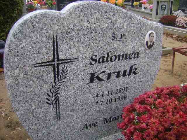 Grób: I.28.8 Kruk Salomen ur.:01.11.1897 zm.:07.10.1996 |