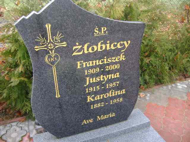 Grób: I.1.9 Żłobicka Justyna ur.:1915 zm.:1957 Żłobicka Karolina ur.:1882 zm.:1958 Żłobicki Franciszek ur.:1909 zm.:2000 |