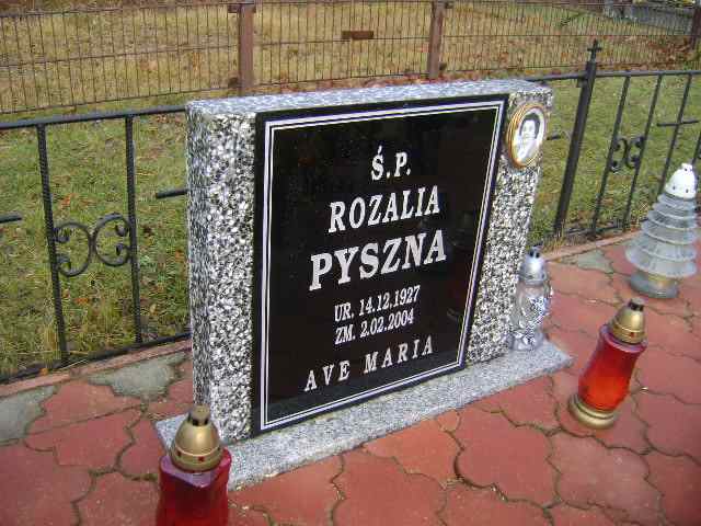 Grób: I.4.30 Pyszna Rozalia ur.:14.12.1927 zm.:02.02.2004 |